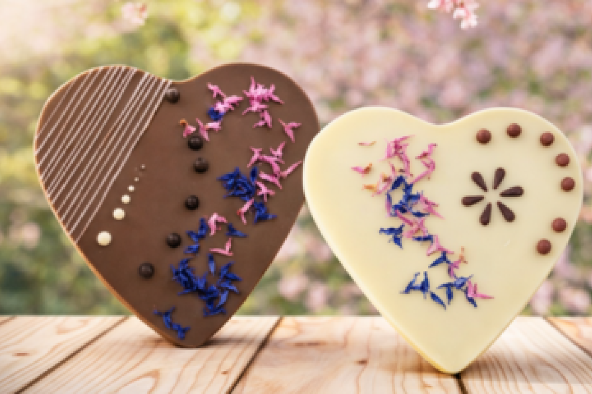 Bring Flower Power auf dein Schoggiherz! Im Chocolarium kannst du deine eigenen Herzen kreativ verzieren.